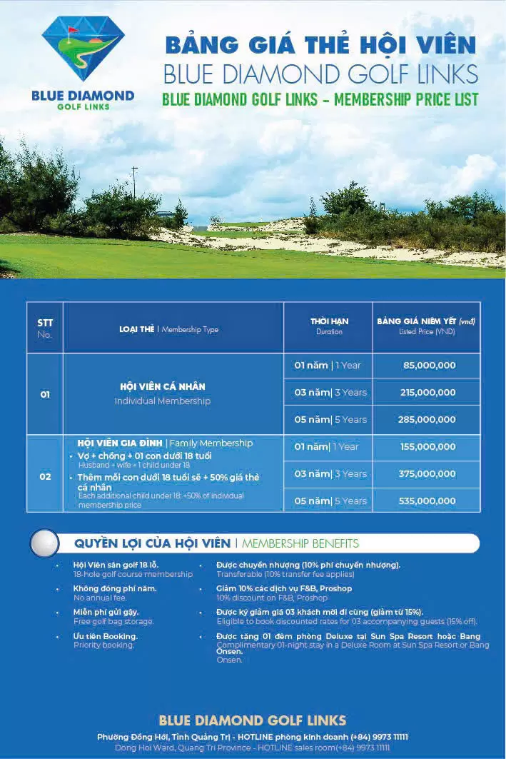 BẢNG GIÁ DỊCH VỤ GOLF BLUE DIAMOND GOLF LINKS